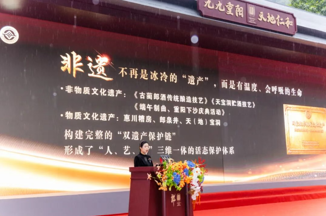 从老时光到新时代,郎酒股份常务副总经理、总工程师蒋英丽从守正创新的酿造工艺出发,讲述郎酒「活」的非遗传承。