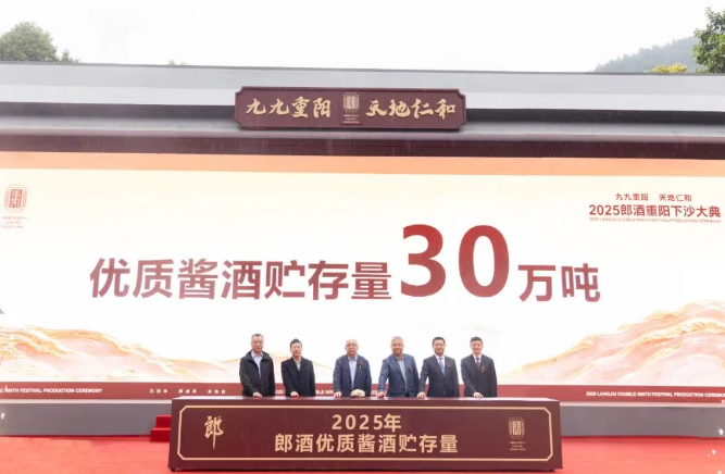 10月29日,重阳佳节,「2025郎酒重阳下沙大典」在郎酒庄园吴家沟生态酿酒区天元广场圆满举行。酿好酒,存新酒,卖老酒,百年郎酒正式进入30万吨酱酒贮存量时代,品质底气,数一数二。