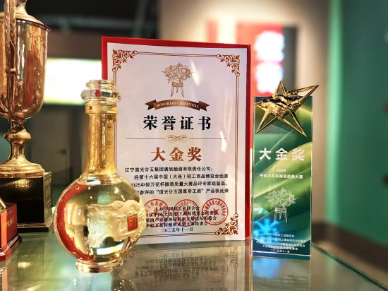 在本届“2025中轻万花杯酿酒质量大赛”中,申报参赛的道光廿五国尊帝王酒产品荣获“大金奖”。