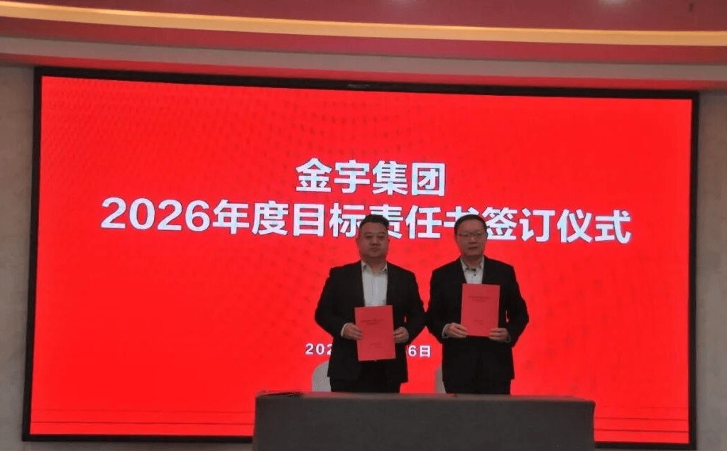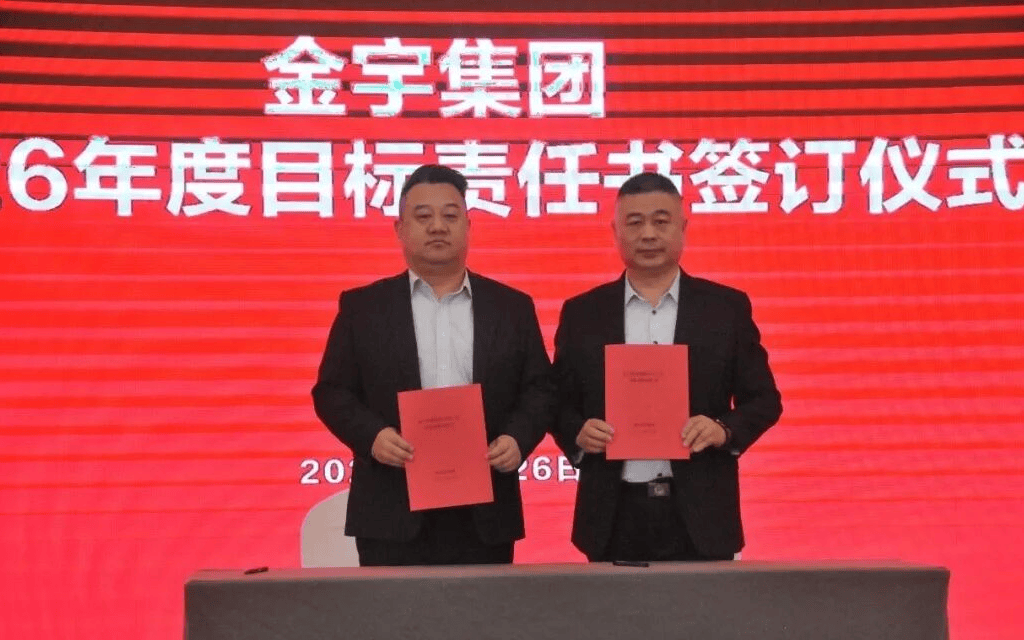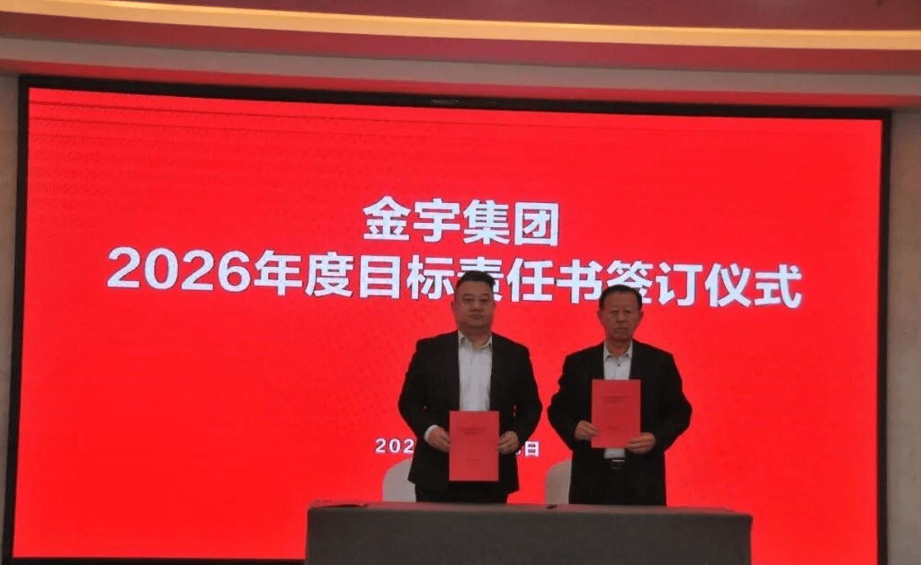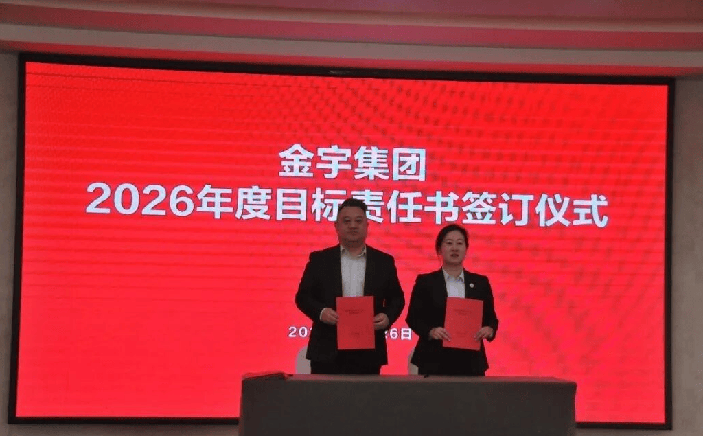 2026年3月26日,金宇集团召开2026年度目标责任书签订仪式,集团全体基层以上干部齐聚一堂,共绘发展蓝图,共担发展使命,以坚定决心与昂扬斗志,吹响2026年全速攻坚的奋进号角。全体干部共同回望过往奋斗路,见证集团多年来的发展积淀与丰硕成果,更加明晰前行方向与发展底气。